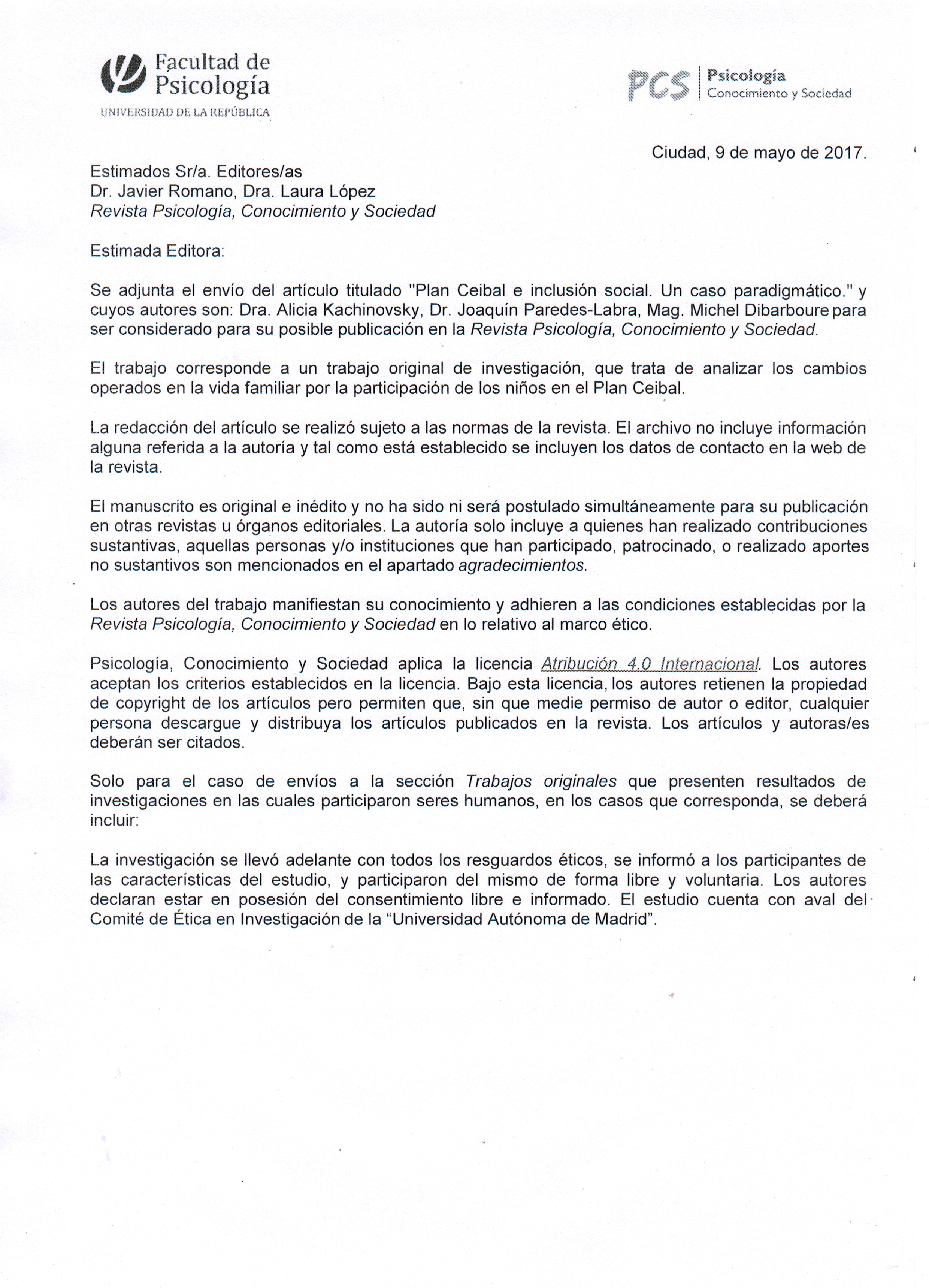 Los autores/as se comprometen a aceptar las condiciones de esta nota de propiedad intelectual, que se aplicarán a este envío cuando sea publicado en esta revista.